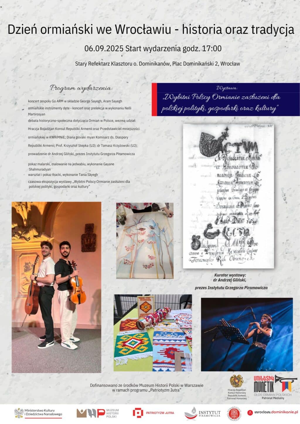 6 września o godzinie 17:00 zapraszamy do Starego Refektarza na Dzień ormiański we Wrocławiu – historia oraz tradycja.